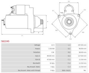 Motor De Partida Denso 12 Volt 10 Dientes 2.5Kw Cw Anclaje 3 Pernos