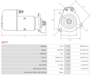 Motor De Partida Bosch 24 Volt 11 Dientes 9 Kw Cw Anclaje 3 Pernos