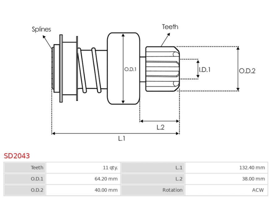 Bendix Hitachi 11 Dientes 40 Diam. Piñón 133 Largo Ccw